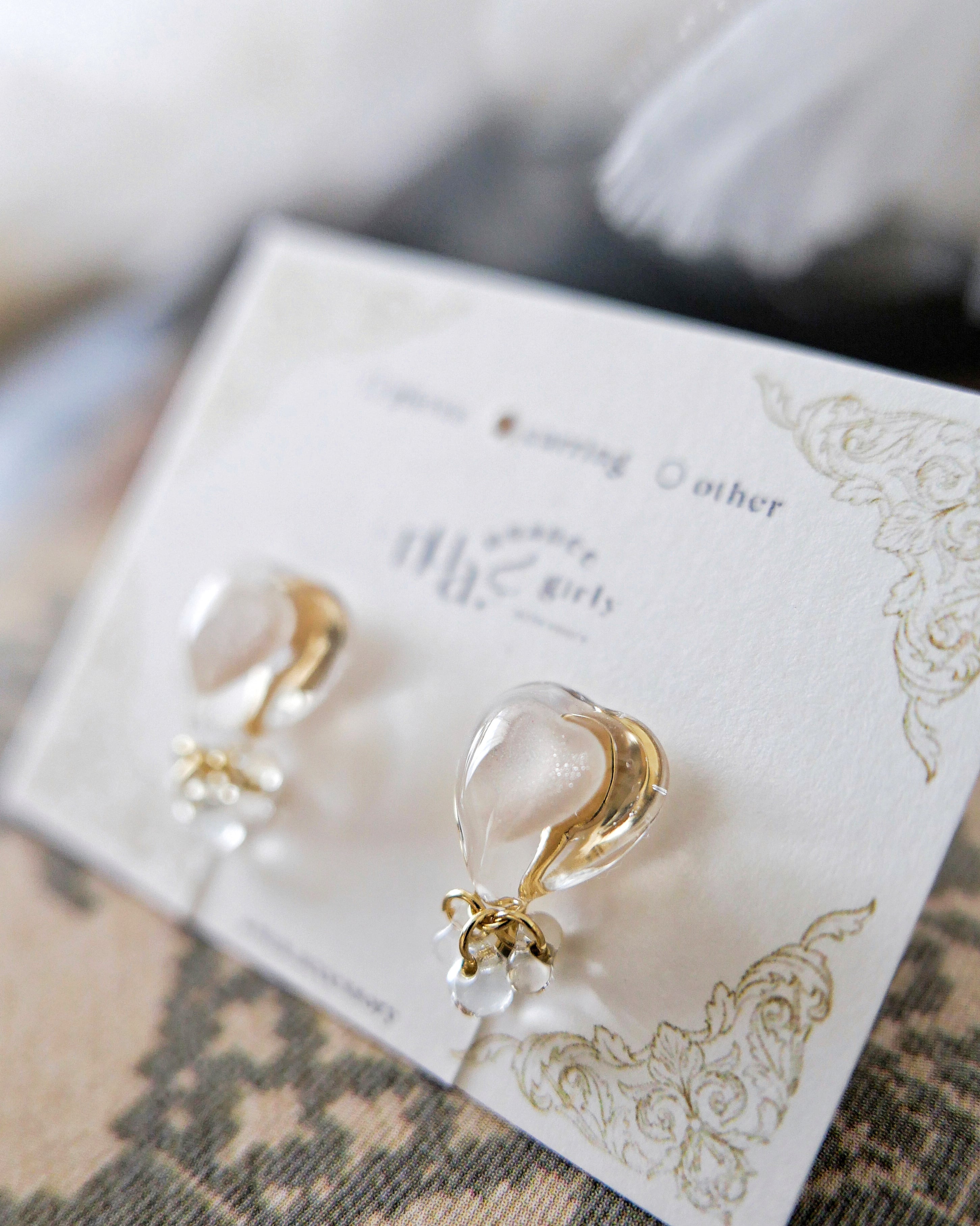 ちゅるんとした透明感ハートのアクセサリー。